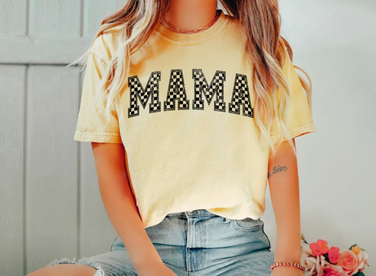 Mama Varsity Checkered Single Color Screen Print (Adults)